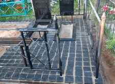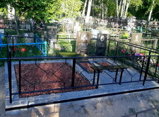 В данном заказе нам предстояло переоформить уже существующее место захоронения. Клиент пожелал облагородить могилу, выложив её территорию брусчаткой, заменив лавочку со столиком и обновив памятники. Обговорив все детали предстоящей работы, мы осмотрели участок. На нижеприведённых фотографиях отображено изначальное состояние места захоронения.