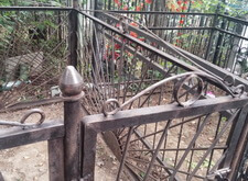 Могила стандартная, не большая. Когда-то здесь стоял гранитный памятник и была высокая ограда. После очередного захоронения плиту убрали в сторону, цветник тоже подняли, переднюю часть ограду демонтировали, установили временный крест.